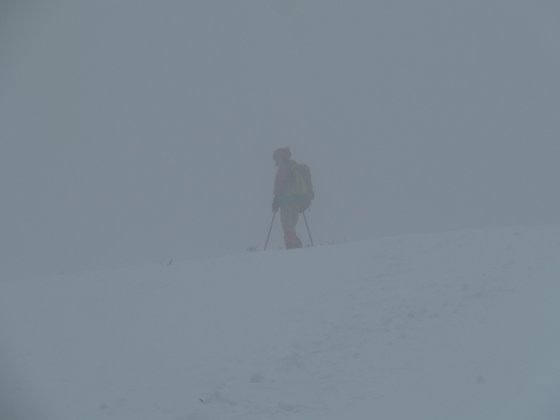 こんなこと言ったら不謹慎かも知れないけど、ホワイトアウトの稜線も緊張感があって、ちょっと良かったよ。(^-^)