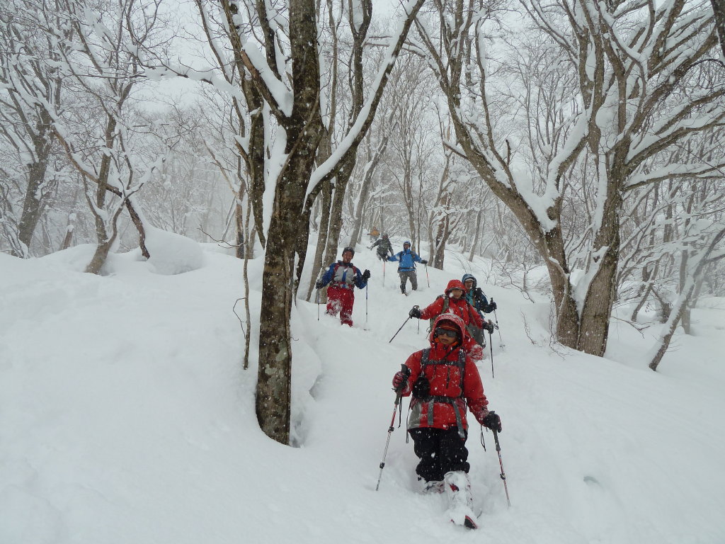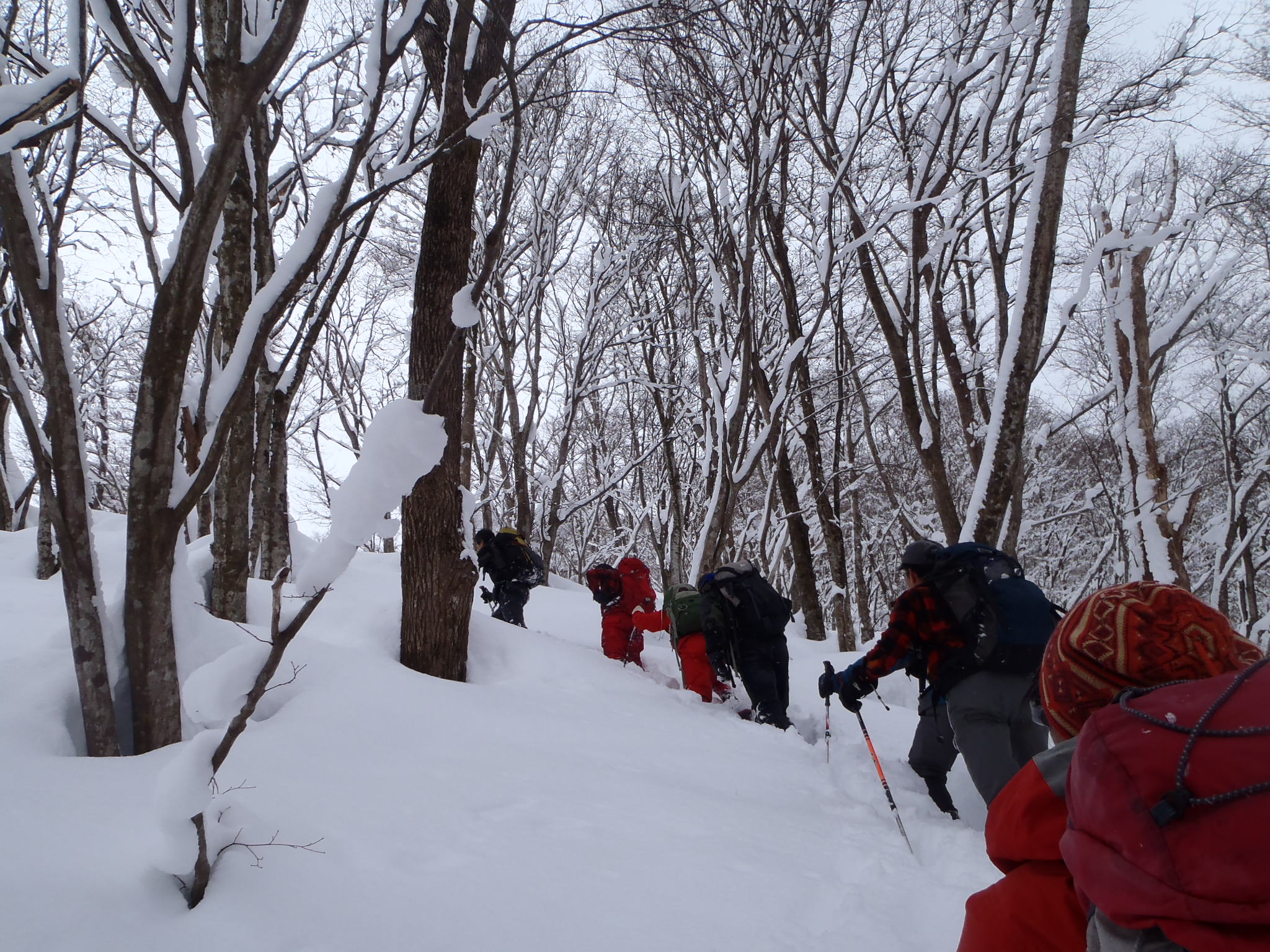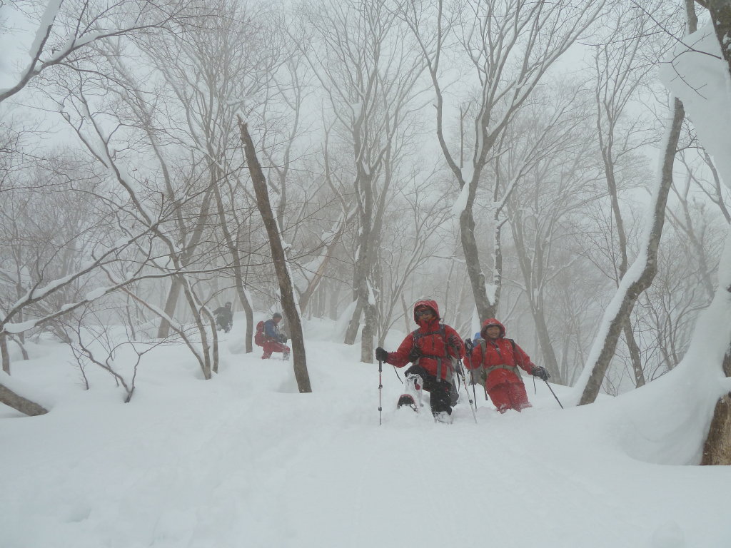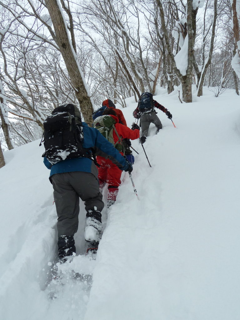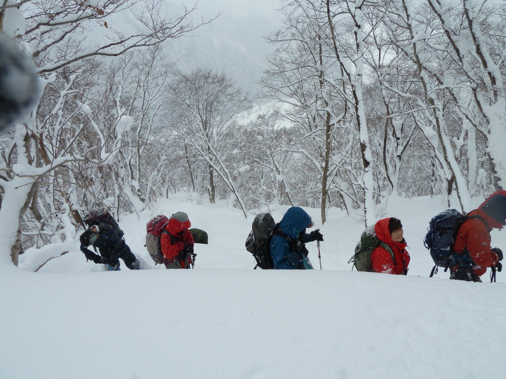 予定変更の上、予定外の雪、展望もなくラッセル三昧に終わったスノー衆パート2だったが、みんなで苦労を分かち合った雪山