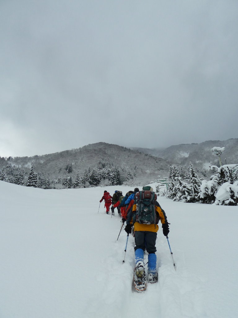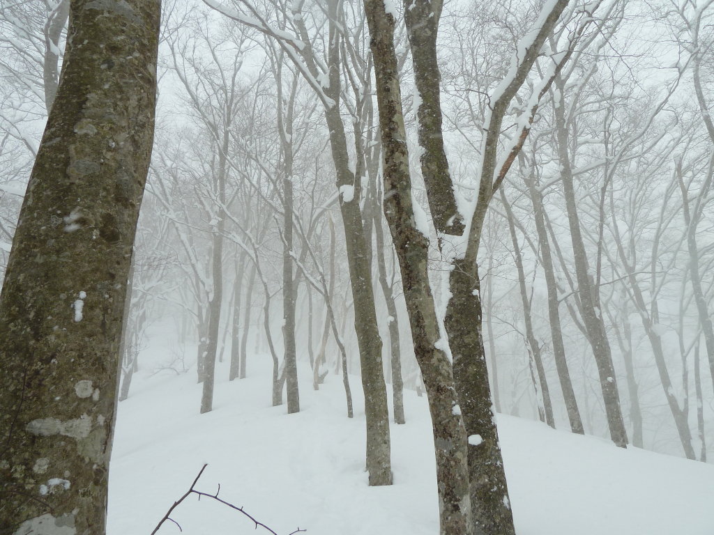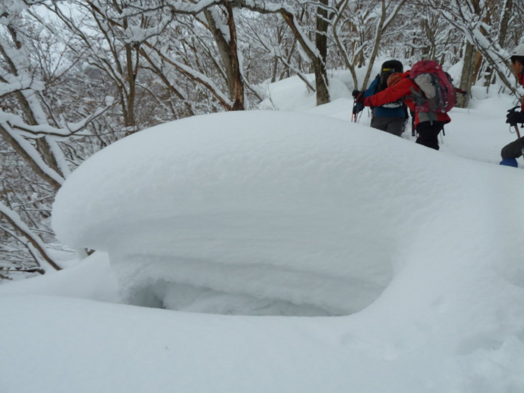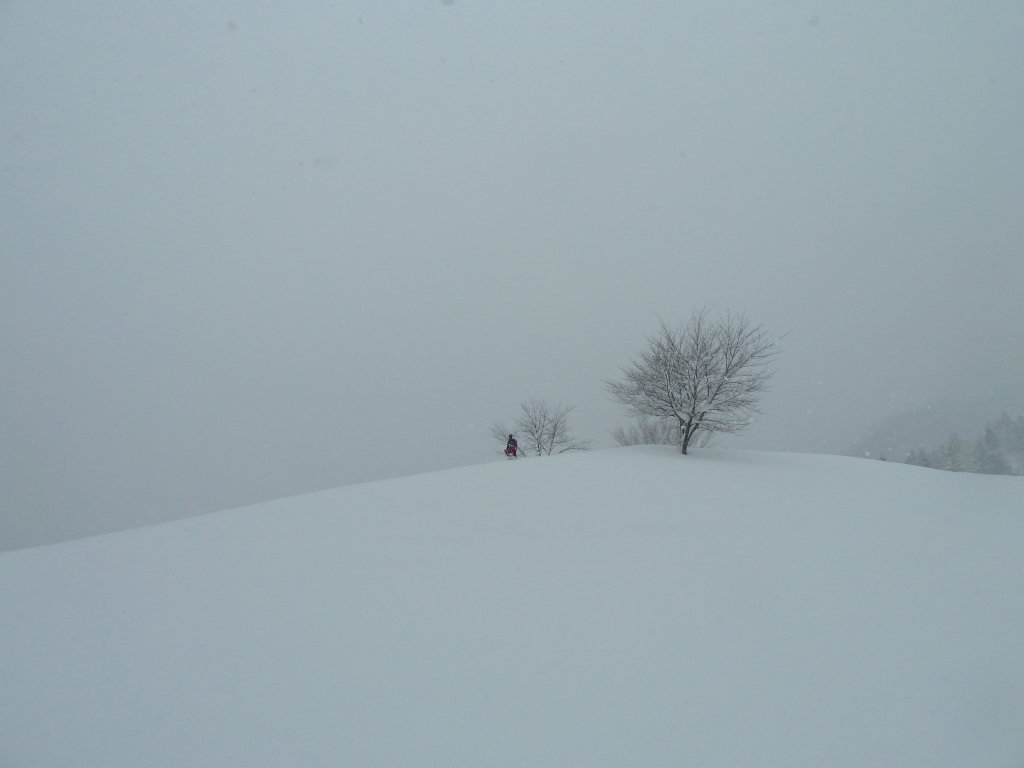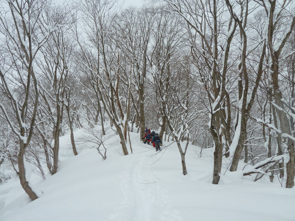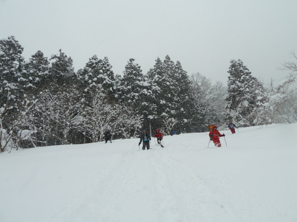 予定変更の上、予定外の雪、展望もなくラッセル三昧に終わったスノー衆パート2だったが、みんなで苦労を分かち合った雪山