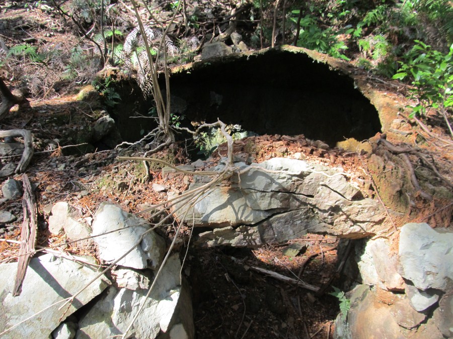 滝を巻く様に谷を上がって行くと天蓋も残る炭焼き窯跡があった。この辺りは植林帯となるが、先日から花粉症の症状が出だしている、案の定くしゃみが出だして鼻水も流れ出した、テッシュでは間に合わない位だ。