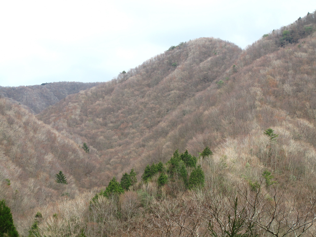 地形図では針葉樹記号で植林を思わせますが、見事に落葉樹の二次林ですよね。