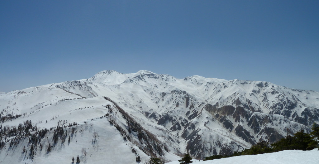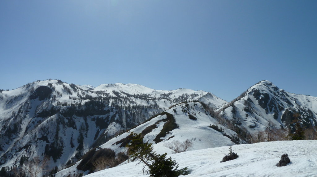 あまりにもあっけない幕切れだった。窓のように開いた鞍部の向こう側には仙人谷を挟んでまったく雪を着けていない火の