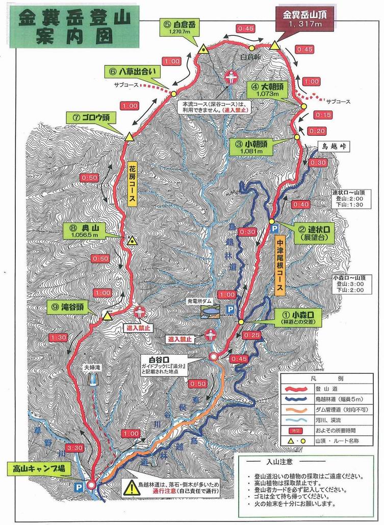 金糞岳登山地図