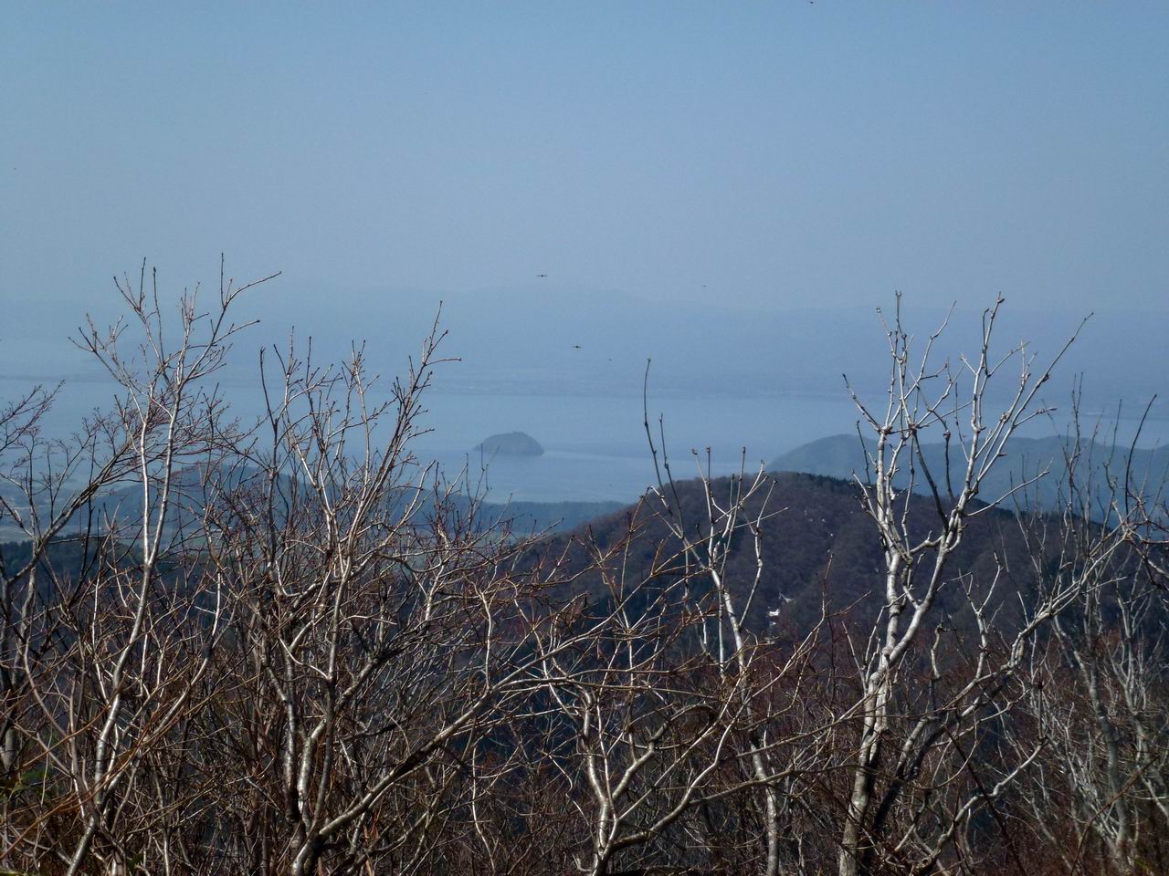 ークであるゴロウ(五郎)の頭(1130m)に着いた。樹間越しに上谷山や左千方が見える。またびわ湖に浮かぶ竹生島も肉眼で確認できる。