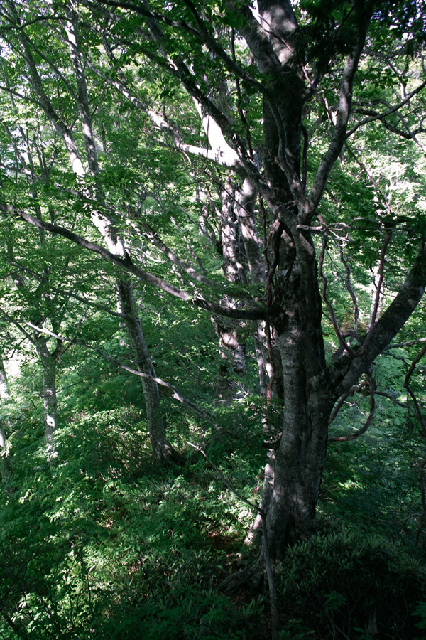 P1290を過ぎたあたりから再び気持ちよいブナの林です。ヤブも薄くなっています。