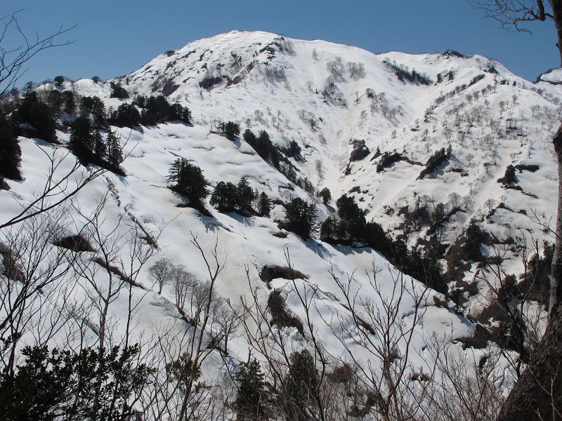 >笈に登ろうとこの辺りの山に予備登山してた、大笠山、ブナオ山、瓢箪山と。