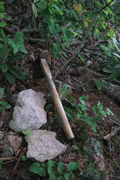 仙人窟岳へのラインがあるとすれば桂湖からの一本しかあり得ない。そう思い、数年前、下見を兼ねて大笠山に登ったのです。ですが、大瓢箪山で、少年kさんに仙人窟岳に登山道が作られつつあるらしい??、という話を少し聞きました。石川側県から?でしたら清水谷から???それはあまりにもナンセンス。作られつつあるのなら石川側じゃないの?