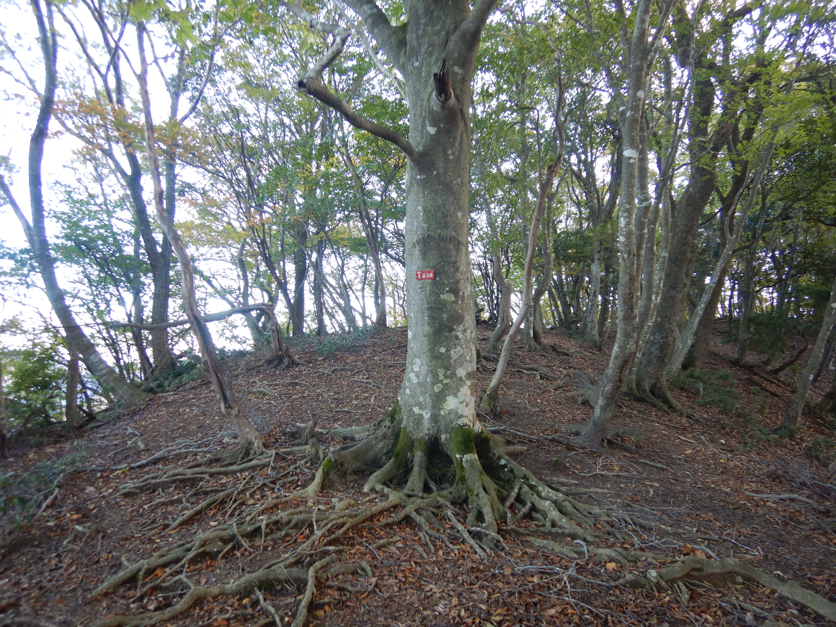 吊り尾根の途中には意外と立派なブナが多かった。