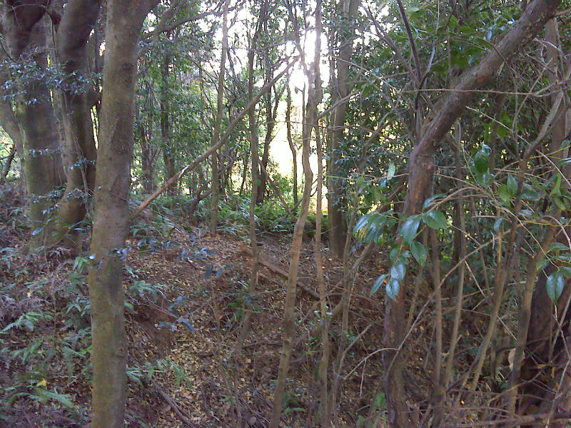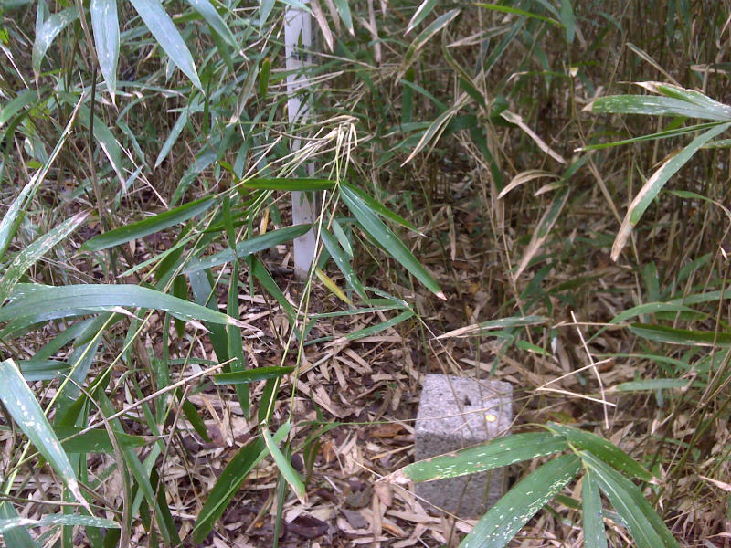 いったん戻って小道に自転車を止めて南側からアプローチして、薮山に突っ込んだ。 なかなか手ごわい薮である。
