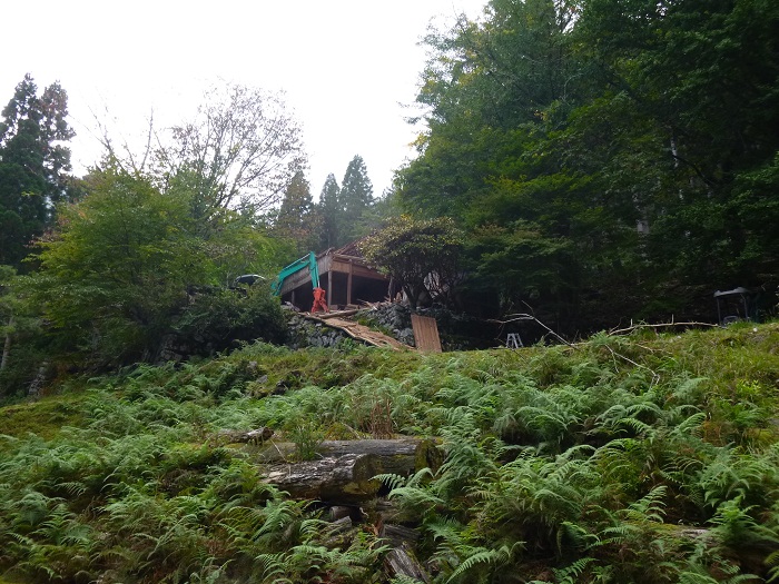 確かにイタズラは怖いし、すぐ裏に作った土場からの土も流れてきそうな心配はある場所だ。しかし見事に何も無くなっている。小さな広場だ。初めて見たらここに小屋があったことはわからないだろうな、くらいにさっぱりしている。