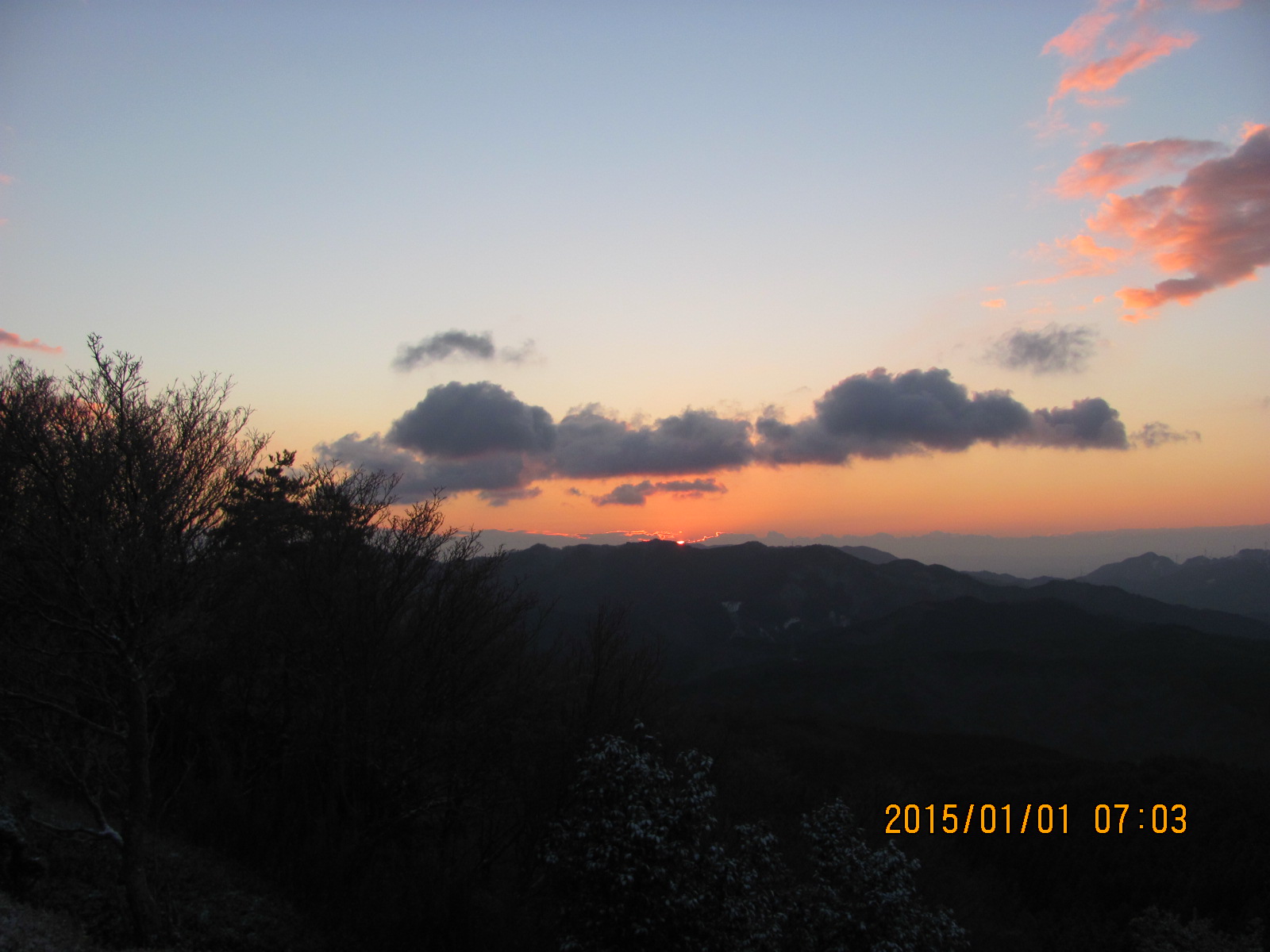 - 雲間からの初日の出(局ヶ頂より)。