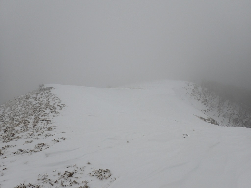 指呼の距離にある鎌ヶ岳でさえ山頂は雪雲に囲われて見えませんでした。