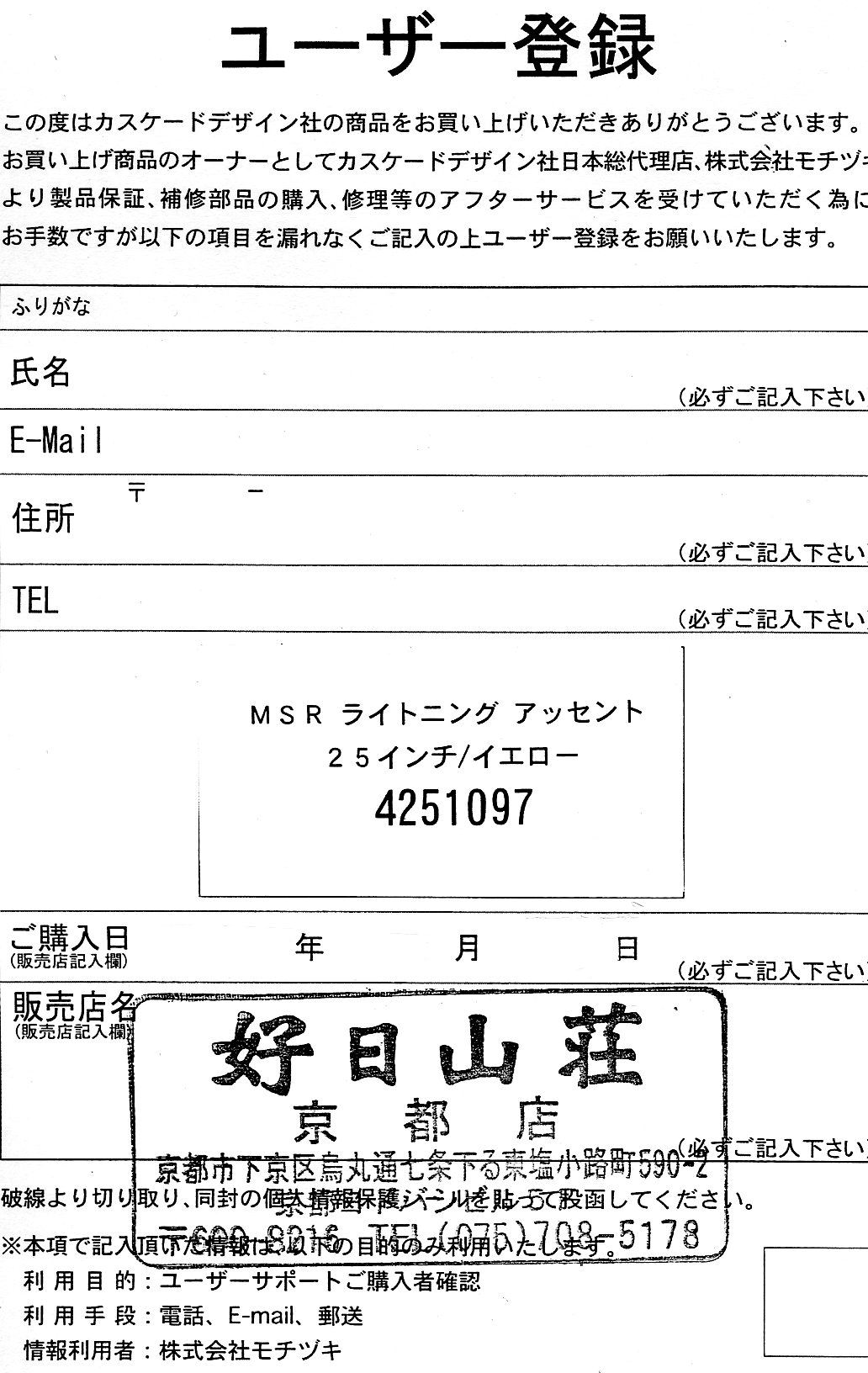 オンラインユーザー登録も考えたのですが、登録フォームの購入店舗が必須項目ですから諦めました。