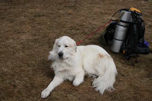 白い大きな犬と登ってこられました。