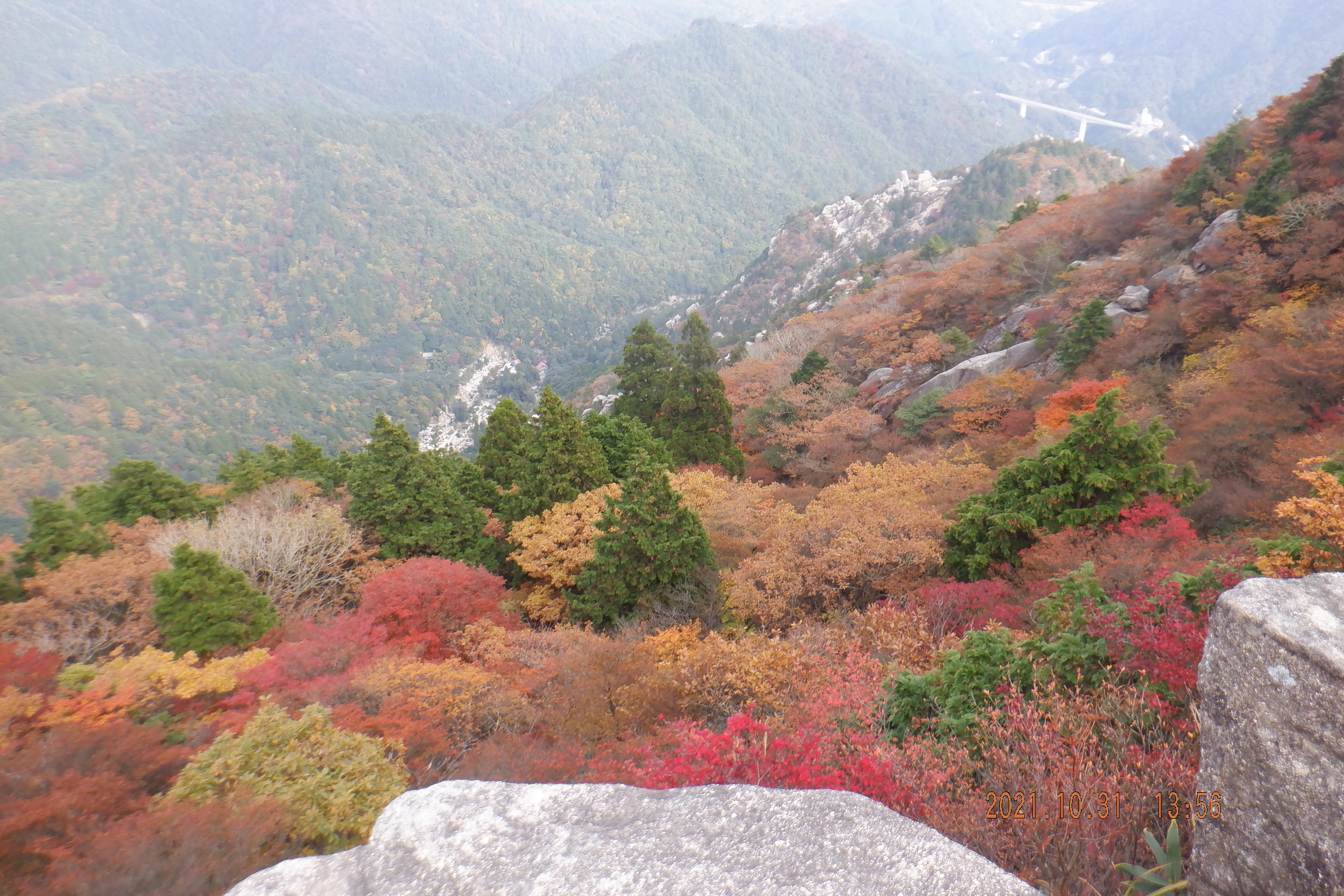 富士見台に上がると観光客が富士見岩から下を眺めていたので行ってみると絵ハガキに出て来るような紅葉を見ることが出来ました。