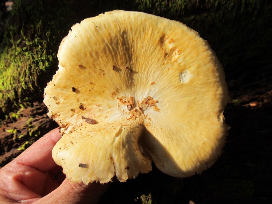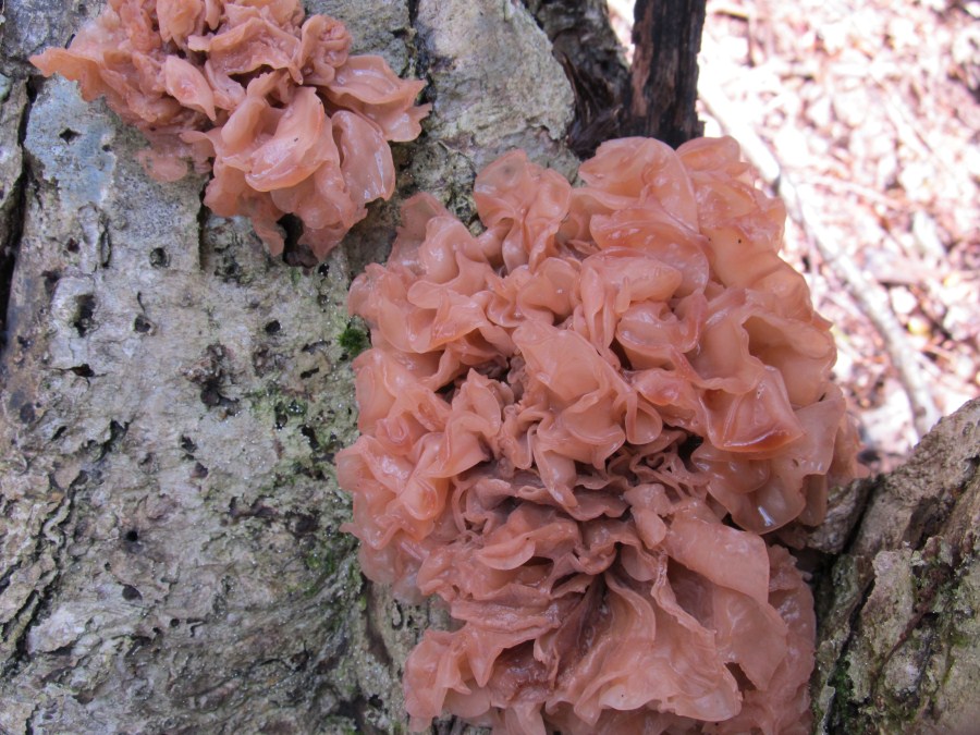 やったーハナビラタケだ~、でも色が違うなぁ、帰って調べたらハナビラニカワタケでした、キクラゲに似た食感でした。