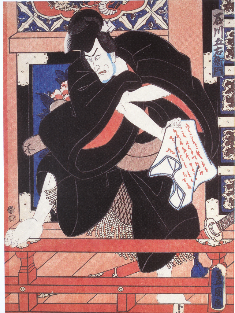 南禅寺の山門で石川五右衛門が「絶景かな、絶景かな・・」と叫んでいる場面の絵を貼っておきます。