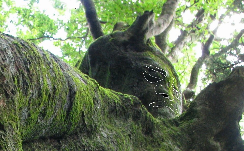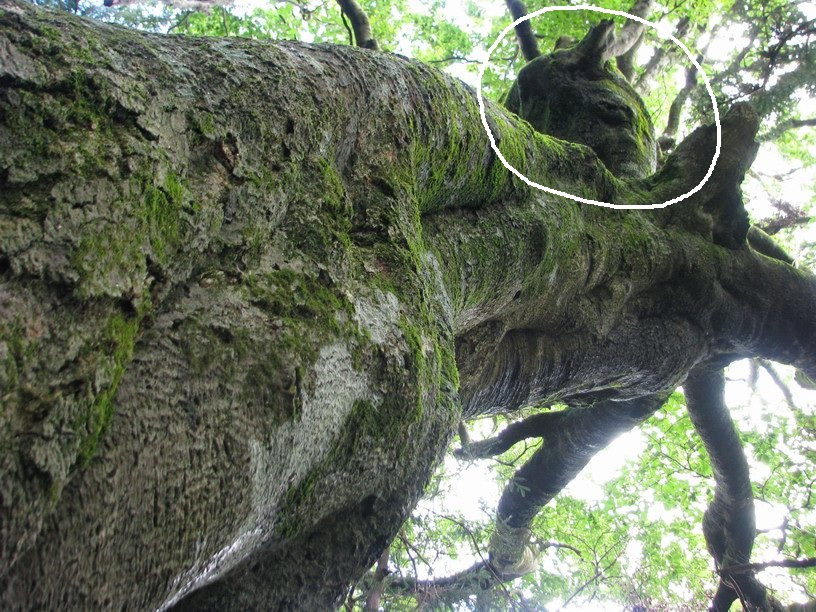 帰宅してからパソコンでブナの写真を見てゾゾーッ (;一_一)木肌に人面が写っているではないか。人面と言うより明王さんに見える。