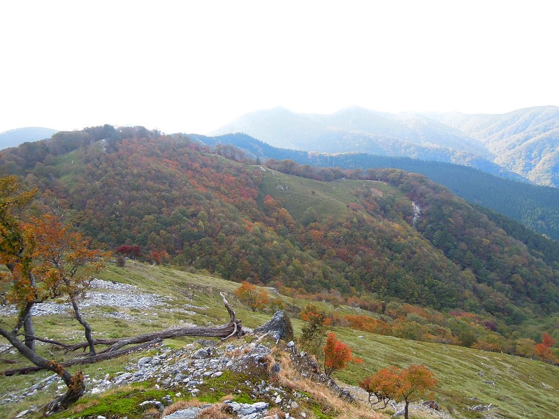 全般的に、よく紅葉したカエデ類はそれなりに数はあるが、盛りはこれから。稜線のブナの黄葉はこれから。