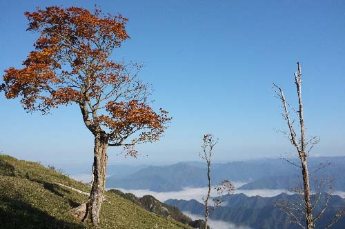 ウシロ嵓から見た明神平の紅葉に魅せられて、縦走路を三塚まで珍しく歩きました。