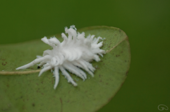 動くかなと葉っぱをちぎって刺激してみると動くことはなく、白い毛のようなものが簡単に取れてしまいました。