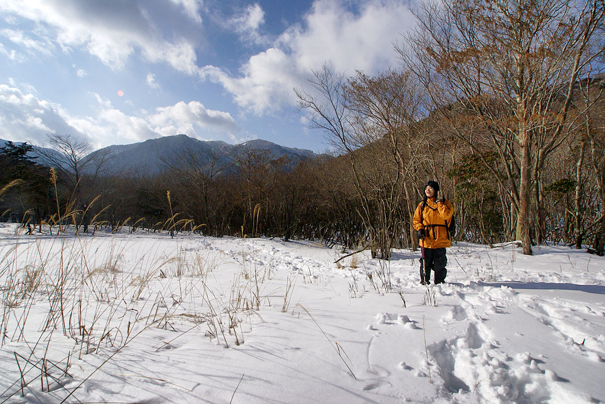冬場はほとんどの場合、良く行っても神崎川手前でみなさん引き返していますね。そう思うと登りの無い鈴鹿の上高地へ直行するほうがよっぽどよく思えた。今日は上高地にしようと即決である。そして根の平峠着。そこそこの踏み跡。でも雪が多いなあ。しばらく行くと右手にサイトをした跡がありそのあとトレースは消える。
