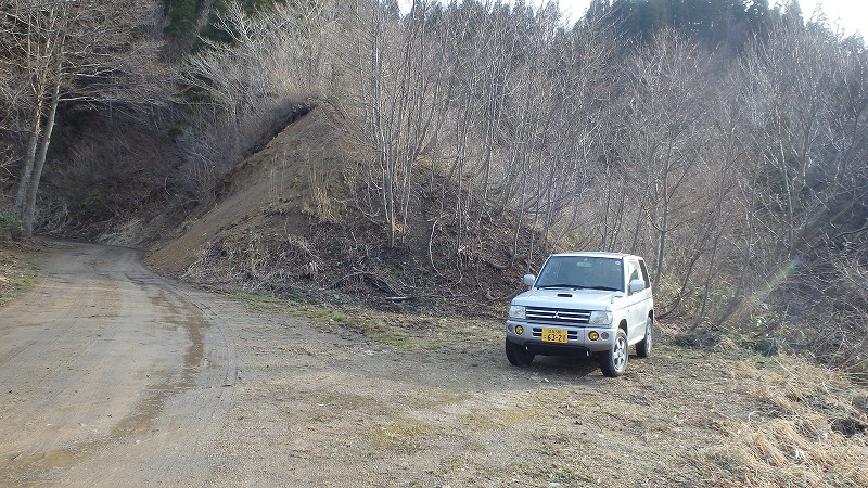 ホハレ林道は旧峠への分岐の200m手前くらいまで舗装されていて、ダートに入っても排水用の洗濯板があるくらいで、パジェちゃんなら4駆にシフトしなくてもスイスイでした。