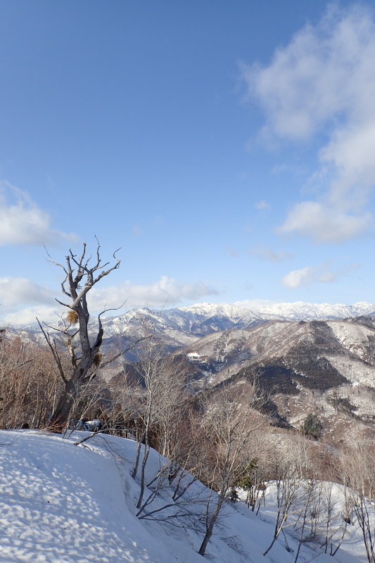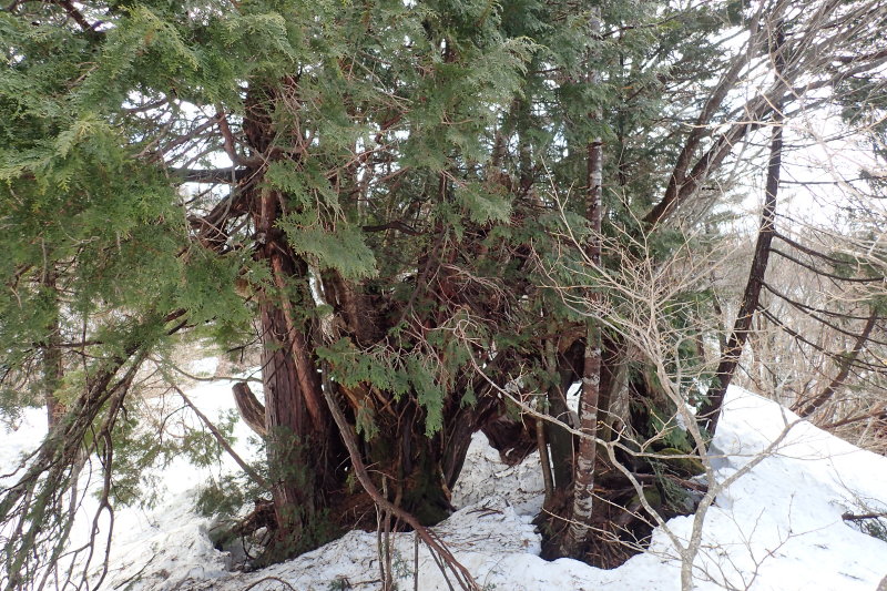 1160.8mの大谷山頂はなぜか普通のヒノキが1本だけ立つ広大な雪原となっていた。それがなければ360度のパ