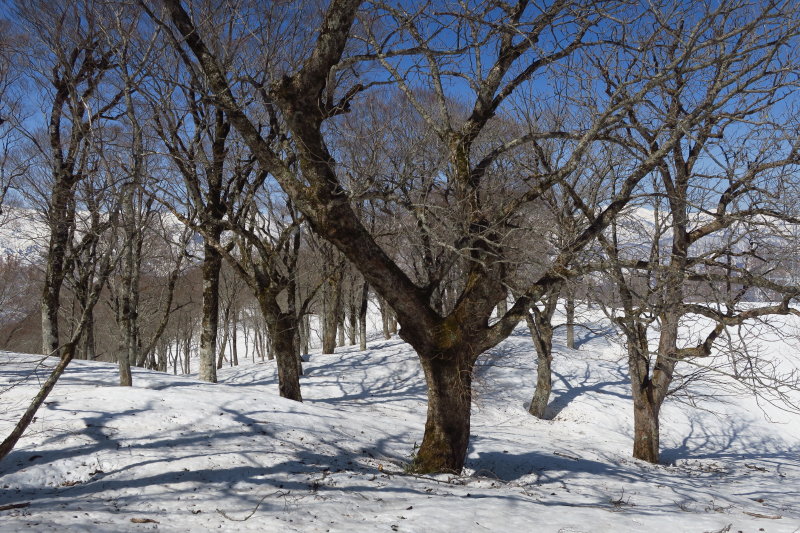 >雪が繋がると、あまり見どころのなかった林相にも変化が現れた。ようやくブナ主体の森となり、かなりの大物