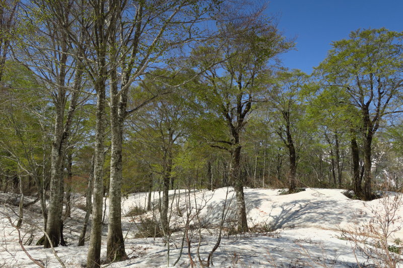 登りきった先には、ゆったりとブナが立ち並ぶのびやかな台地が広がっていた。