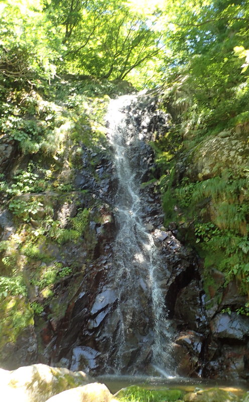 最後の車道歩きも暑かったですね。ダム手前の滝で汗まみれの顔を洗いすっきりしました。