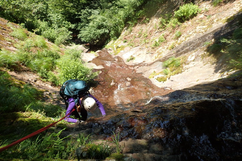 ホールドの乏しいナメ滝と暑さで思ったよりも時間がかかってしまいました。