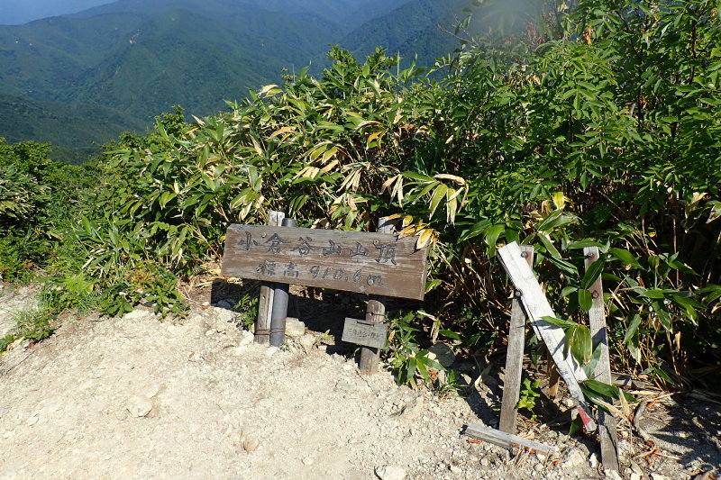右に取って5分足らずで小倉谷山の山頂に到着したのはいいが、これまで体感したことのないような熱波が襲って
