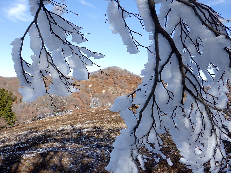 山頂直下で見上げると久しぶりに美しい霧氷を見ることが出来た。