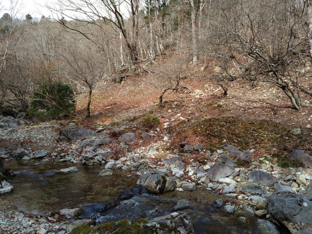 ここからだと左岸の尾根を登ってトラバースして降りて…なんか恐いなぁ。今日は止めよう。