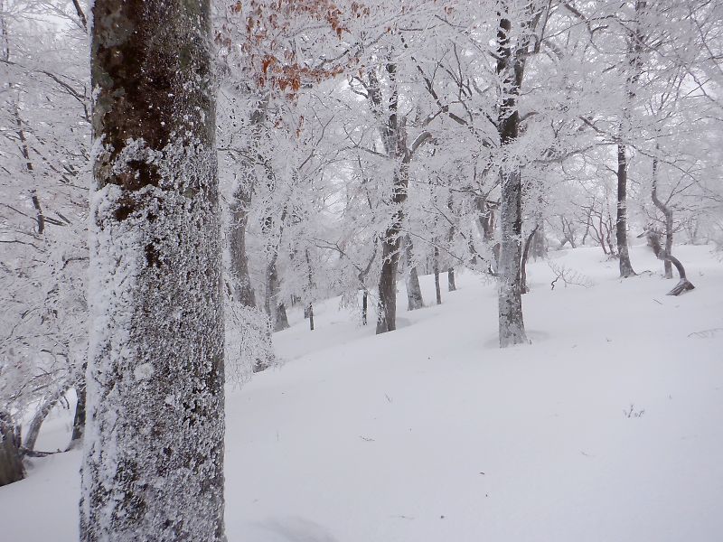 31日は穏やかな上天気でしたが夜間に霧氷の原料になるガスが流れたのですね。