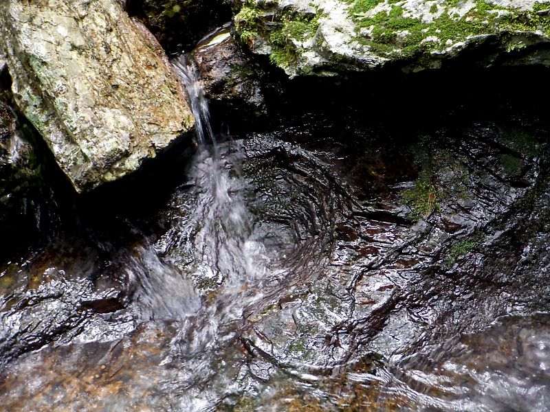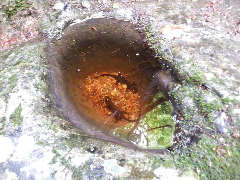 不動滝手前の小さな甌穴の中にイモリが2匹。