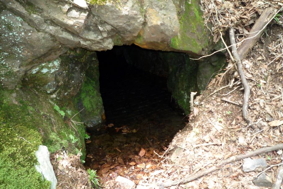 坑道の入口見つけて、ひとりではしゃいでました。この坑道なにが採掘できたのでしょうね?位置的に高昌鉱山の下なので「オゾ鉱山」でしょうか?廃村研究に詳しいハリマオさんならご存じかな。オゾン層からきたオゾでしょうか?