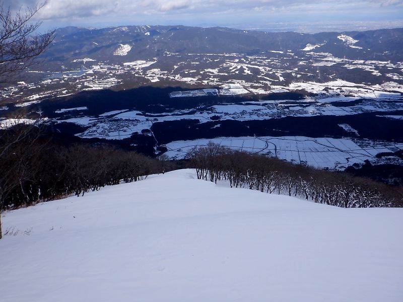 お藤の鼻筋の雪はよく締まっていてスイスイ下れた。