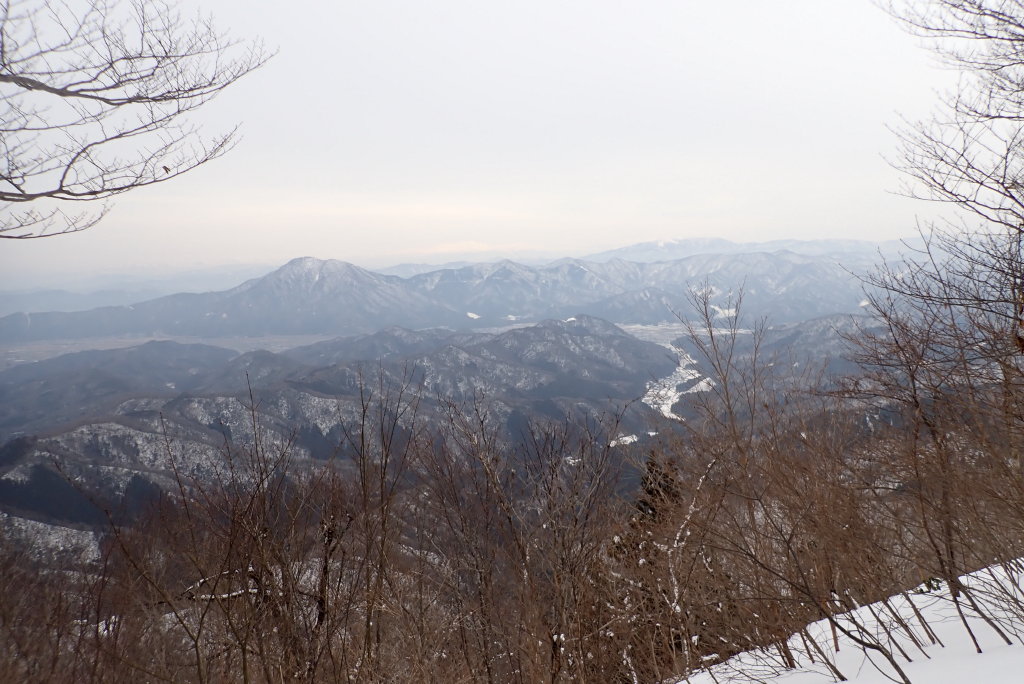 少し霞みがちだが、三周ヶ岳から美濃俣丸、笹ヶ峰、金草岳へと続く越美国境稜線が横たわっている。