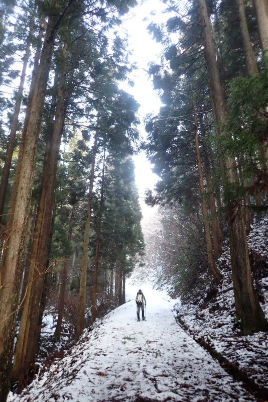 林道終点からは山道に入る。雪に覆われているが、幅の広いしっかりした登山道が続いているのがわかった。