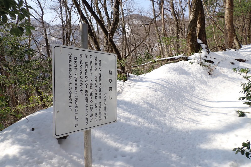 看板があり、「切り通し」という説明書きがあったが、切り通しというのは尾根を横切るように付けられた、