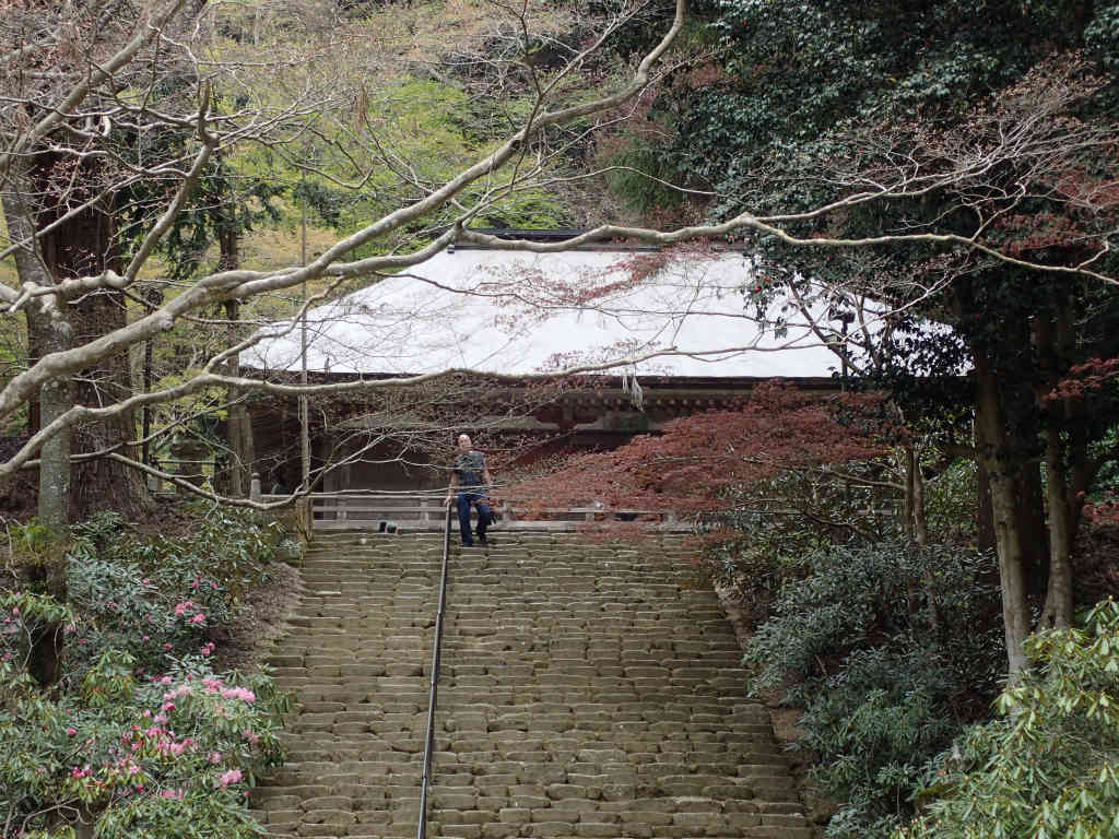近鉄榛原駅で曽爾村役場行きのバスの乗り換えまで30分ほど時間があったので,駅前のコンビニでおにぎりを買って朝食にした。バスには単独の男性と女性が乗り込んだ。高井バス停では私を含め3人とも降り,同じ方向に歩き始める。皆,目的地は同じようだ。 仏隆寺に向かってゆるい坂道を登っていく。しばらく行くと伊勢本街道の分岐。以前,伊勢本街道を曽爾村から榛原に向けて歩いた時に道を間違えてこの部分を歩き損なったのだった。「そうか,ここに出てくるのか」と思いながら通り過ぎる。男性に追いついたので話しかけてみると,仏隆寺から室生寺へ抜けるのだという。私と同じコースだ。 30分ほどで仏隆寺着。お目当ての千年桜は残念ながらほとんど花が付いていない。もう木が弱って花を咲かすだけの体力が残っていないのかと思ったが,仏隆寺の奥さんによると15日に雹が降って花が全部落ちてしまったのだという。残念だが,他にもソメイヨシノがあったり,ミツバツツジが綺麗に咲いているので良しとしよう。 古びた石段を上がり,入山料200円を払って仏隆寺の境内へ。バスで一緒だった男性と女性がお茶を飲んでいる。女性のほうは仏隆寺のお馴染みさんのようだ。境内に白い花を咲かせている大きな木があったので,寺の奥さんに「なんという桜ですか」と聞いてみると,桜ではなくてヤマナシだという。葉を見てみると確かに桜ではなくてナシの葉だった。 仏隆寺をあとにして室生古道を登っていく。唐戸峠に出ると舗装された道になる。これ以後,道は室生に向かって緩やかに下っている。腰折れ地蔵からは室生の集落が一望される。室生寺に向かう斜面に散在する家並みと山村風景はとても美しく,私がこのコースを好む大きな理由になっている。美しい風景を見ながらのんびりと斜面を下りていく。有名な西光寺の枝垂れ桜(樹齢400年)はもう既に花を落としているが,古びたお寺と枝垂れ桜の組み合わせは絵になる風景だ。次回はこの枝垂れ桜の花期に合わせて歩いてみようか。 平日だけあって室生寺は観光客も少なく,静かだ。もう何度も来ているのでそのまま素通りしようかとも思ったが,せっかくなのでお参りしていくことにする。境内のシャクナゲが綺麗に咲いている。ずっと桜ばかり追いかけてきたがもうシャクナゲの季節になっていたのだ。入ってみるとやっぱりいい雰囲気だ。金堂が特別拝観期間中ということで入ってみる。 正面に国宝の釈迦如来像,その左右に文殊菩薩像と薬師如来像を従えている。スマホ限定で写真撮影可と書いてある。SNSに投稿してもいいらしい。室生寺も粋なことをするものだ。次いで本堂に如意輪観音像を見に行く。手が6本あり,右ひざを立てるという半跏像である。仏像としては珍しい姿形だが,これが如意輪観音像の典型的な姿らしい。 近鉄室生口大野駅までは東海自然歩道をたどることにする。室生の集落を再び登り,山上公園芸術の森から山道に入る。門森峠を越えるとあとはダラダラした下りが続く。周囲が植林なので面白みはないが,車道を歩くよりはマシだろう。大野寺の磨崖仏を見るが,最近目が悪くなってきているせいかよく見えない。