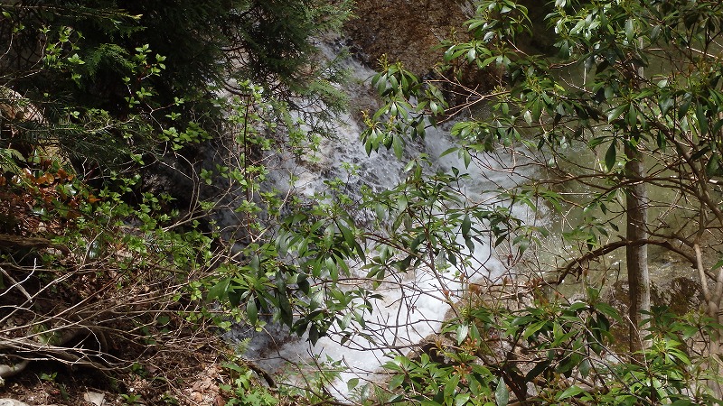 山中で出会った花はシャクナゲ、コバノミツバツツジ、アセビなどの樹花、足元のイワカガミ、タチツボスミレ、ハルジオンくらい。シロヤシオは見当たらない(まだ早いのか?)。
