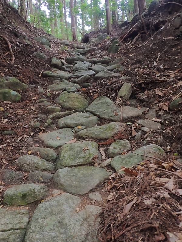 一本道で、石畳の残るすばらしい山路です。