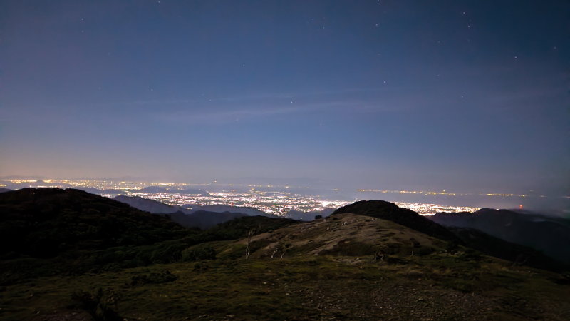 三重県側は雲がモクモクと湧き出しているが、滋賀県側はすっきりと晴れ渡って彦根方面と思しき夜景が美しい。