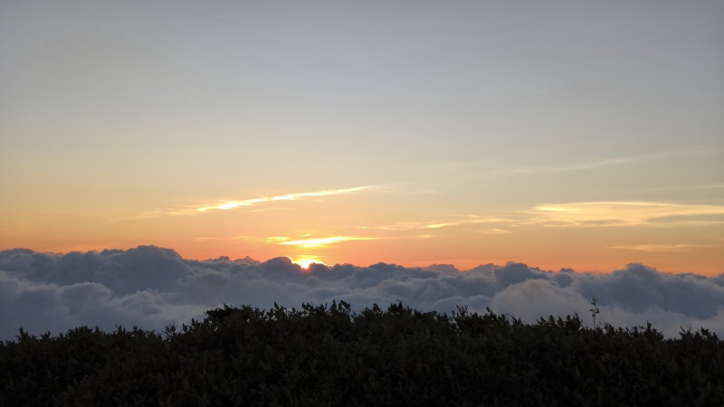 雲海の上端がオレンジに染まる。思い描いていたご来光とは違ったが、よく見るような凡庸な日の出よりもよほど