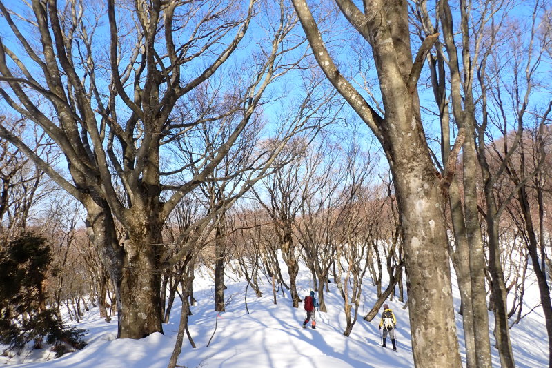 主尾根に乗ると3mオーバーのブナの大木が数本出迎えてくれる。何度も歩いている尾根だがやはりここはいい。