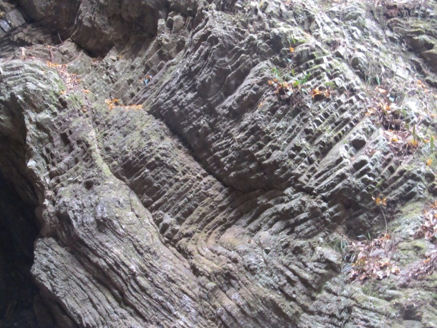 押淵からマイガイ林道に入り白滝神社の駐車場に車を止める、切間の鉢へは白滝神社からも行けるが今回は鬼ヶ城に向かう、ここは暖地性シダ群落の有る所だ。鉄梯子を上がると岩屋が有る右手には僅かな水量の滝が流れ落ちている。