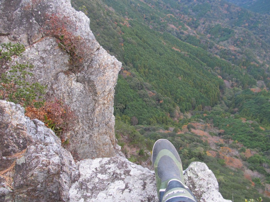 でもね、あそこは映画のセットみたいなもんで、見た目は凄いのだけど裏に回ると全然違うんです、岩は無くなり普通の斜面なのです。登山道歩いてて展望の岩場に寄るでしょう、そんな感じですね